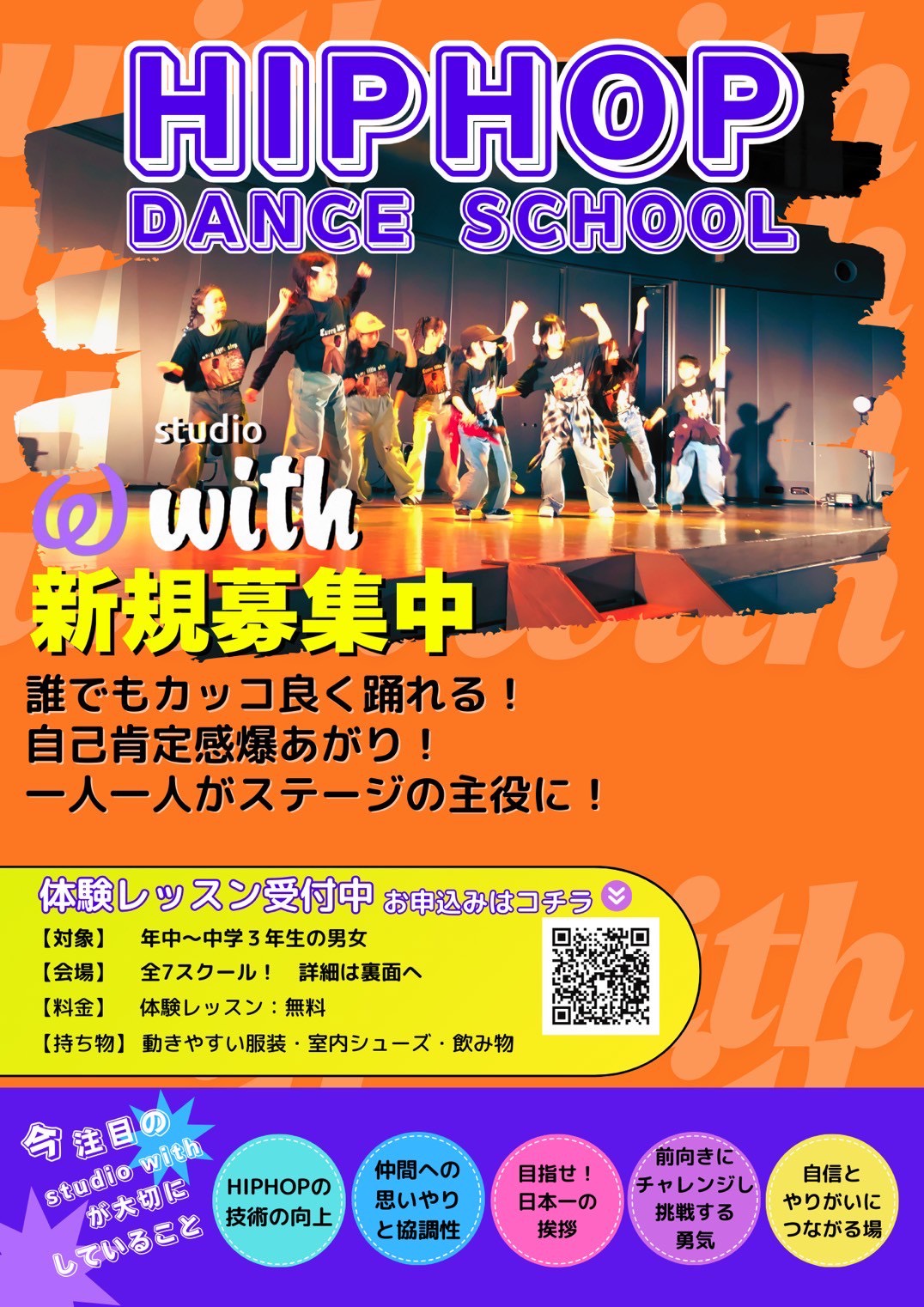 ダンススクール「studio with」では、技術向上と人間育成を通じて子供たちの成長を支援しています。